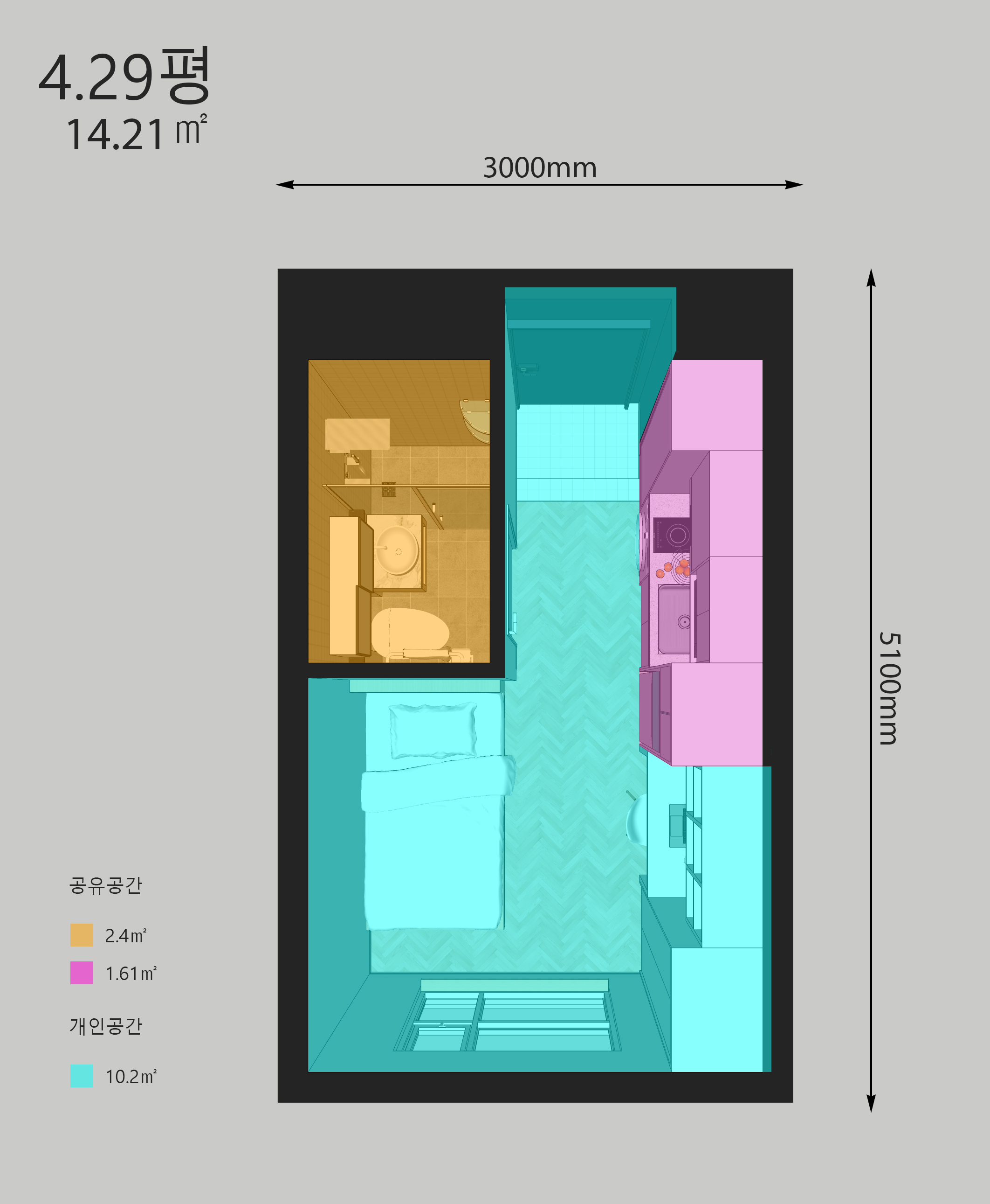 - 공유공간(다수의 거주자가 공동으로 사용하는 거실·주방 공동욕실)